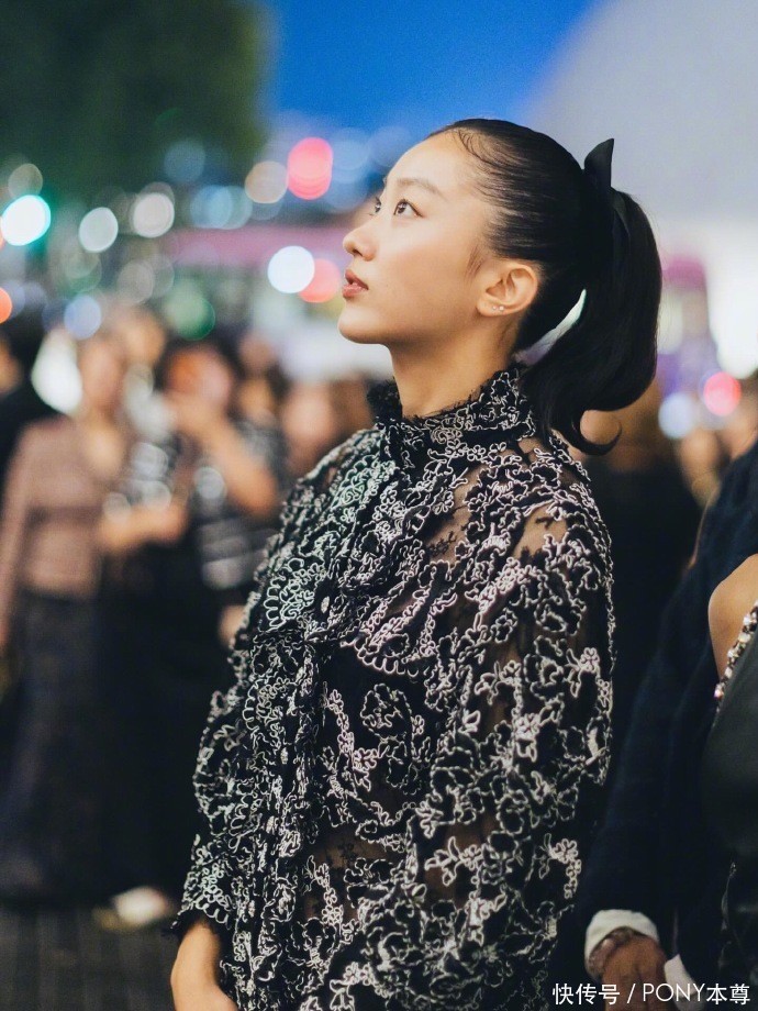 陈康堤将头发扎成高扎马尾,这种发型不仅凸显了她精致的五官,更展现出青春的活力与朝气。佩戴的黑色蝴蝶结发饰,如同点睛之笔,为整体造型增添了一份甜美与可爱。手拎的黑色丝绒香奈儿迷你包,小巧精致,既实用又时尚,与短裙相得益彰,展现出她对时尚细节的把控能力。